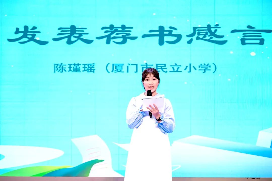 厦门市民立小学的小小荐书官陈瑾瑶荣获小学高段组一等奖,她觉得,阅读像是穿梭在万千奇妙世界的魔法钥匙,每一本书都是一个神秘国度。