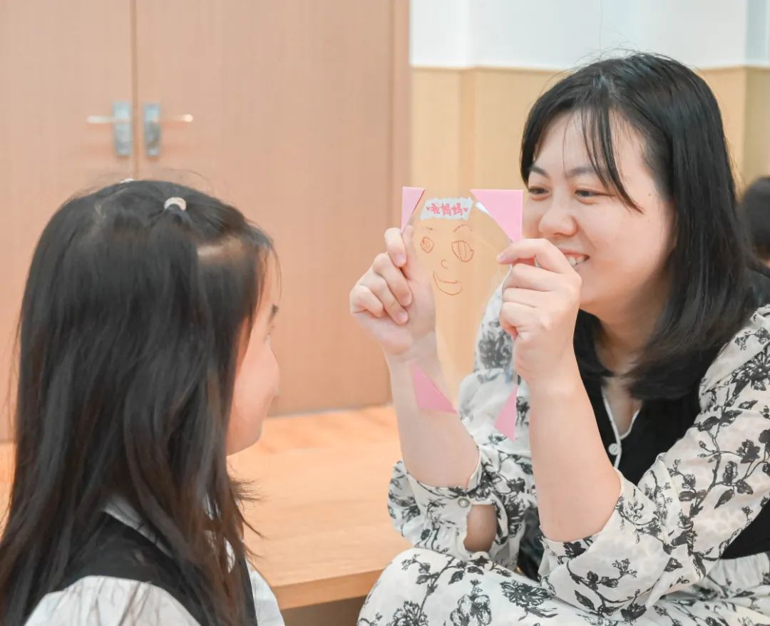 绘本故事结束后,现场爱意满满。孩子们纷纷看向身边的 “仙女妈妈”,主动表达爱意。