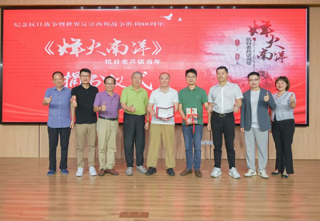 在全场的期待中,捐赠仪式紧随开场环节正式举行。主持人邀请郑毅夫先生留步,并请思明区文旅局二级调研员郑多达上台 —— 作为思明区图书馆的代表,郑多达接过《烽火南洋》书籍,完成了这场意义非凡的 “历史交接”。